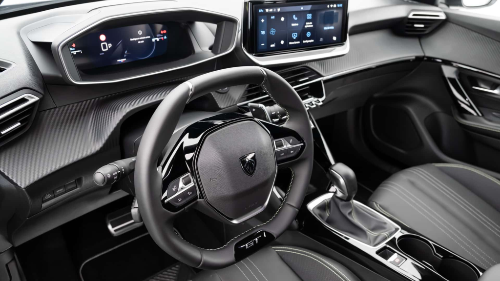 Já o 3008 entra em outra proposta. Ele foi pensado para impressionar mais, tanto visualmente quanto na prática. O destaque começa no i-Cockpit mais avançado, com painel digital em efeito 3D em algumas versões, além de uma central maior e mais sofisticada.