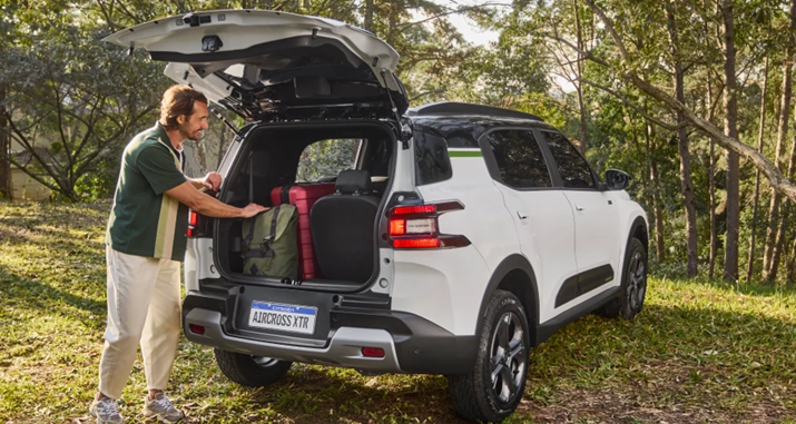 O Citroën C3 Aircross se destaca pelo porta malas de aproximadamente 493 litros, um dos maiores entre os SUVs compactos atuais.