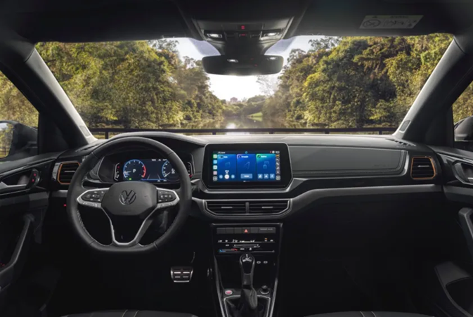 A cabine transmite aspecto de carro atual, com comandos bem organizados e ambientação alinhada às versões mais sofisticadas da Volkswagen.
